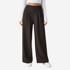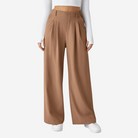 Den höga midjan och de eleganta vecken framtill framhäver silhuetten på ett stilfullt sätt, medan den vida passformen ger både komfort och rörelsefrihet.