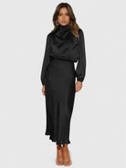 Mångsidig halv hög krage: Den stilfulla halvhöga kragen ger en modern twist och gör klänningen lämplig för allt från brunch till kvällsträffar.