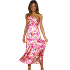 ALVA | Asymmetrisk blommig midiklänning