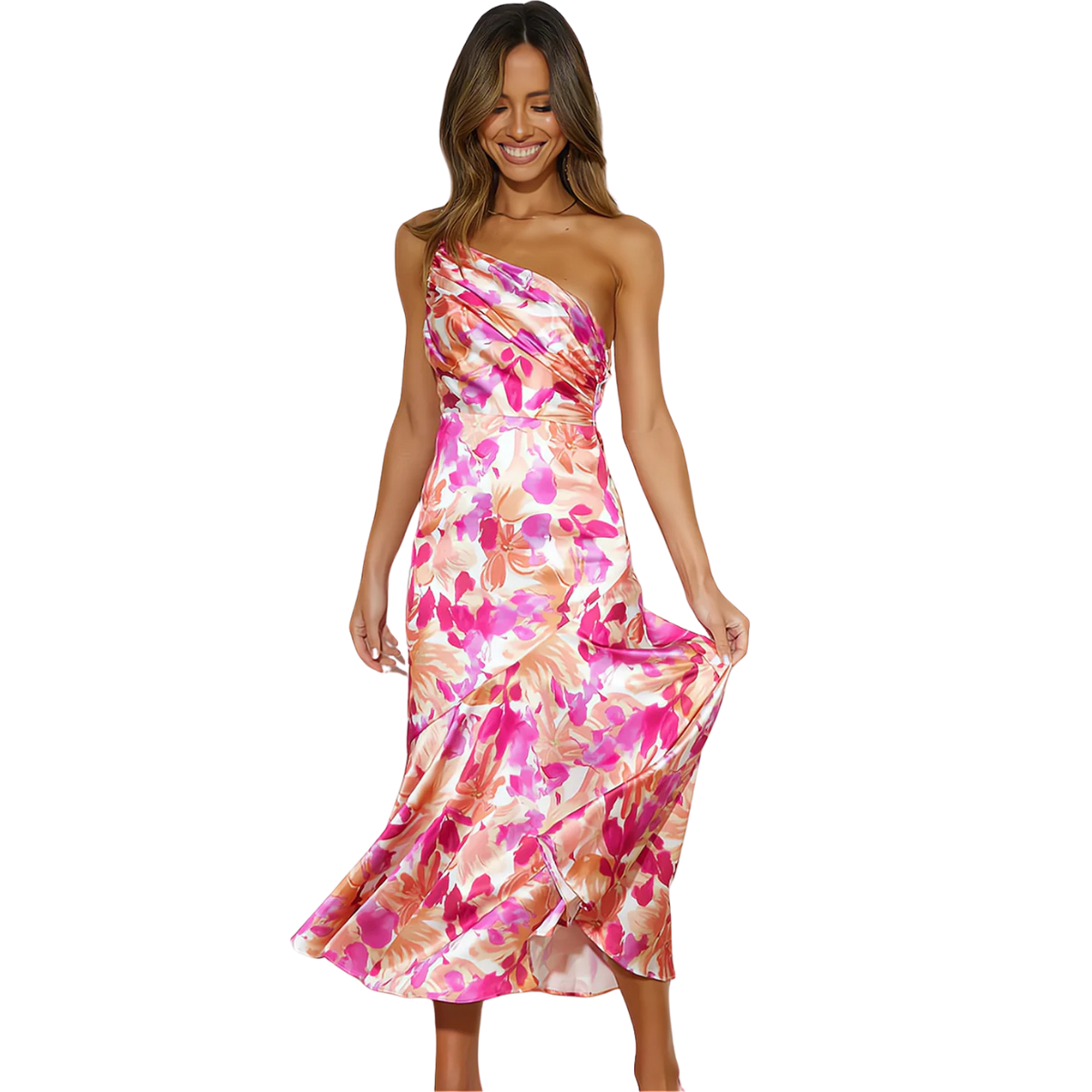 ALVA™ – Asymmetrisk blommig midiklänning 🌸✨