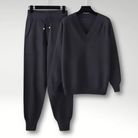 Scopri il massimo del comfort con il completo due pezzi Bella Milano™ Serenità Senza Tempo. Progettato con un pullover casual a scollo a V e un jogging abbinato, questo completo offre un perfetto equilibrio di eleganza informale. Il tessuto morbido garantisce calore senza appesantire, rendendolo ideale per momenti di relax a casa o per uscite informali. Grazie alla sua vestibilità aderente e all'attenzione ai dettagli, questo completo eleva con stile il tuo look casual.