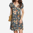ALVA™ kombinerar komfort och stil i denna kortärmade klänning av bomull och polyester. Den smickrande V-ringningen framhäver hals och dekolletage, medan det blommiga mönstret tillför en romantisk och fräsch känsla.