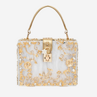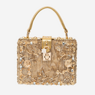 Questa borsa a scatola è impreziosita da esclusivi motivi floreali dorati che donano un tocco femminile e sofisticato.